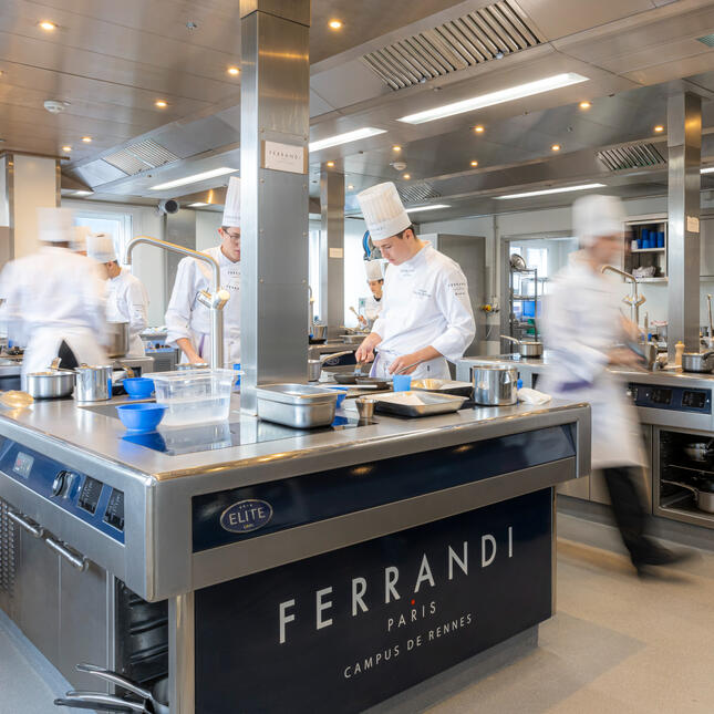 Doté de 5 laboratoires, d’un restaurant d’application, et d’une boutique de pâtisserie, le campus favorise une immersion totale dans le monde professionnel.Grâce à un réseau de partenaires internationaux, FERRANDI Paris Campus de Rennes assure à ses étudiant(e)s une insertion professionnelle rapide et qualitative. Reconnue pour déployer l’excellence partout, et tout le temps, le campus de Rennes développe une pédagogie axée sur :